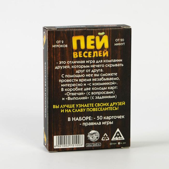 Купить игра для компании "пей веселей" 50 карт от 180 руб. с доставкой до пункта выдачи в Угличе. Интернет магазин ДекаМаркет. Оплата при получении.